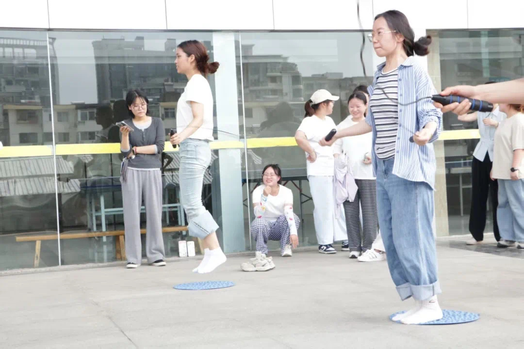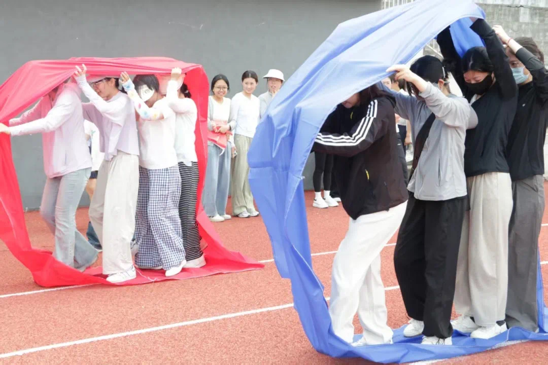 背靠背夹气球接力、无敌风火轮、摸石过河折返接力赛、一圈到底、指压板跳绳等多个活动精彩万分。