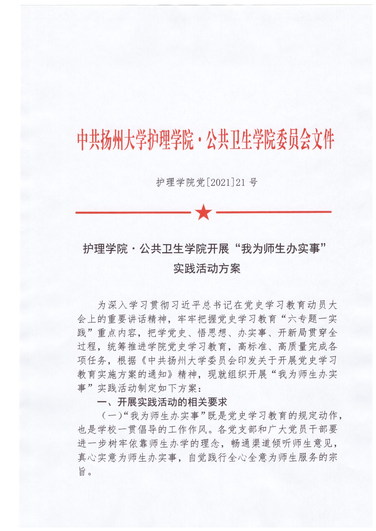 护理学院·公共卫生学院开展“我为师生办实事”实践活动方案