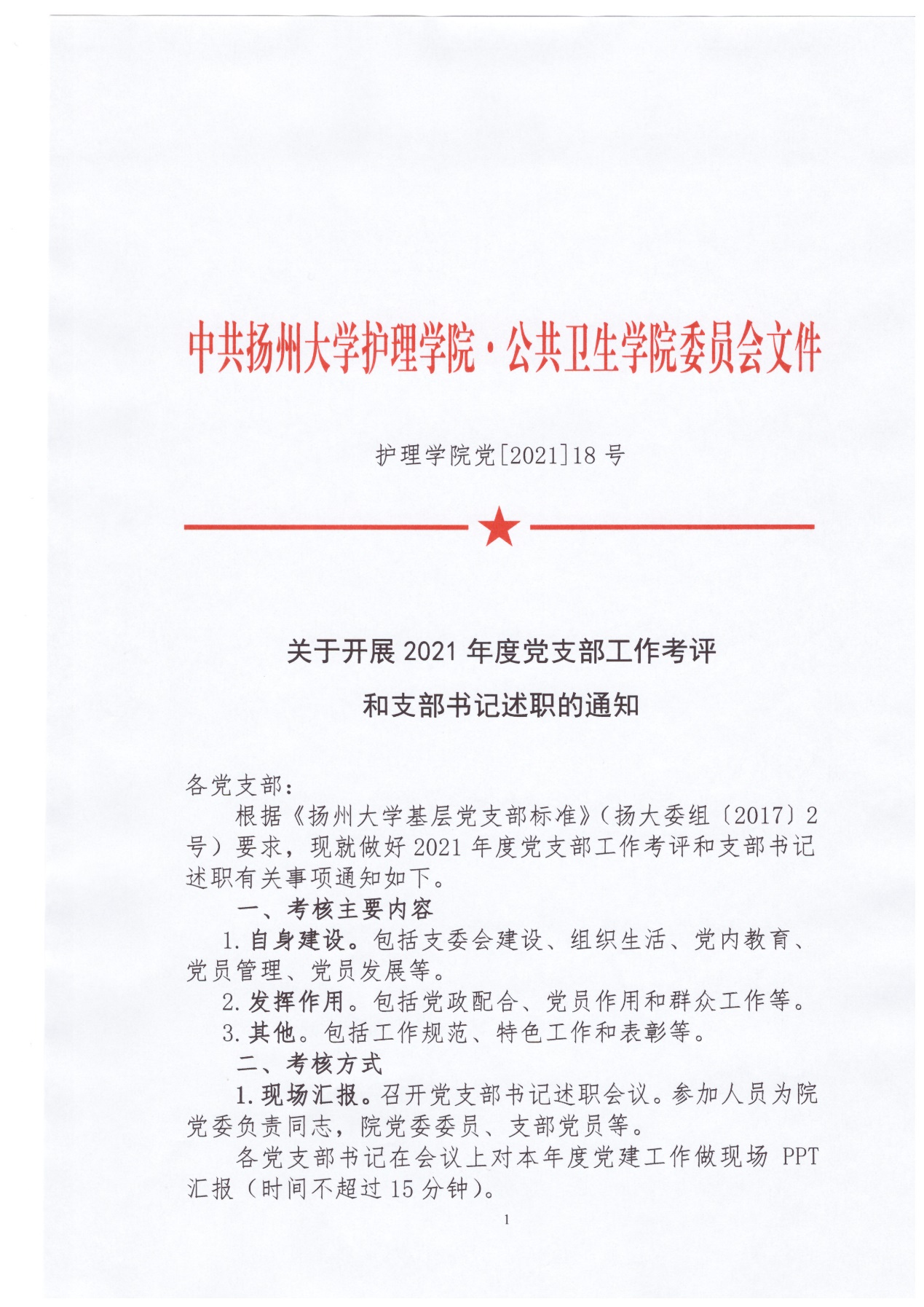 关于开展2021年度党支部工作考评和支部书记述职的通知