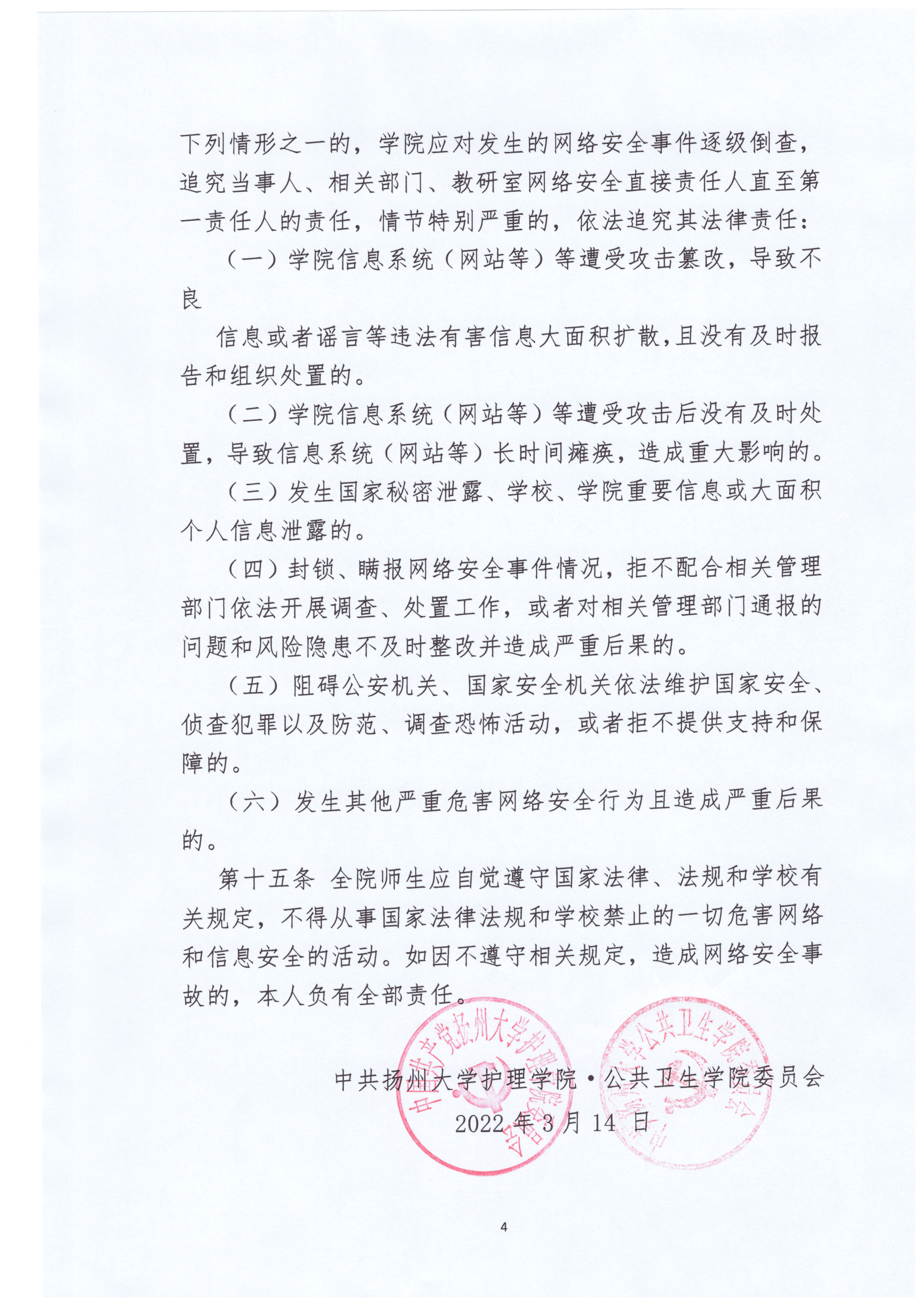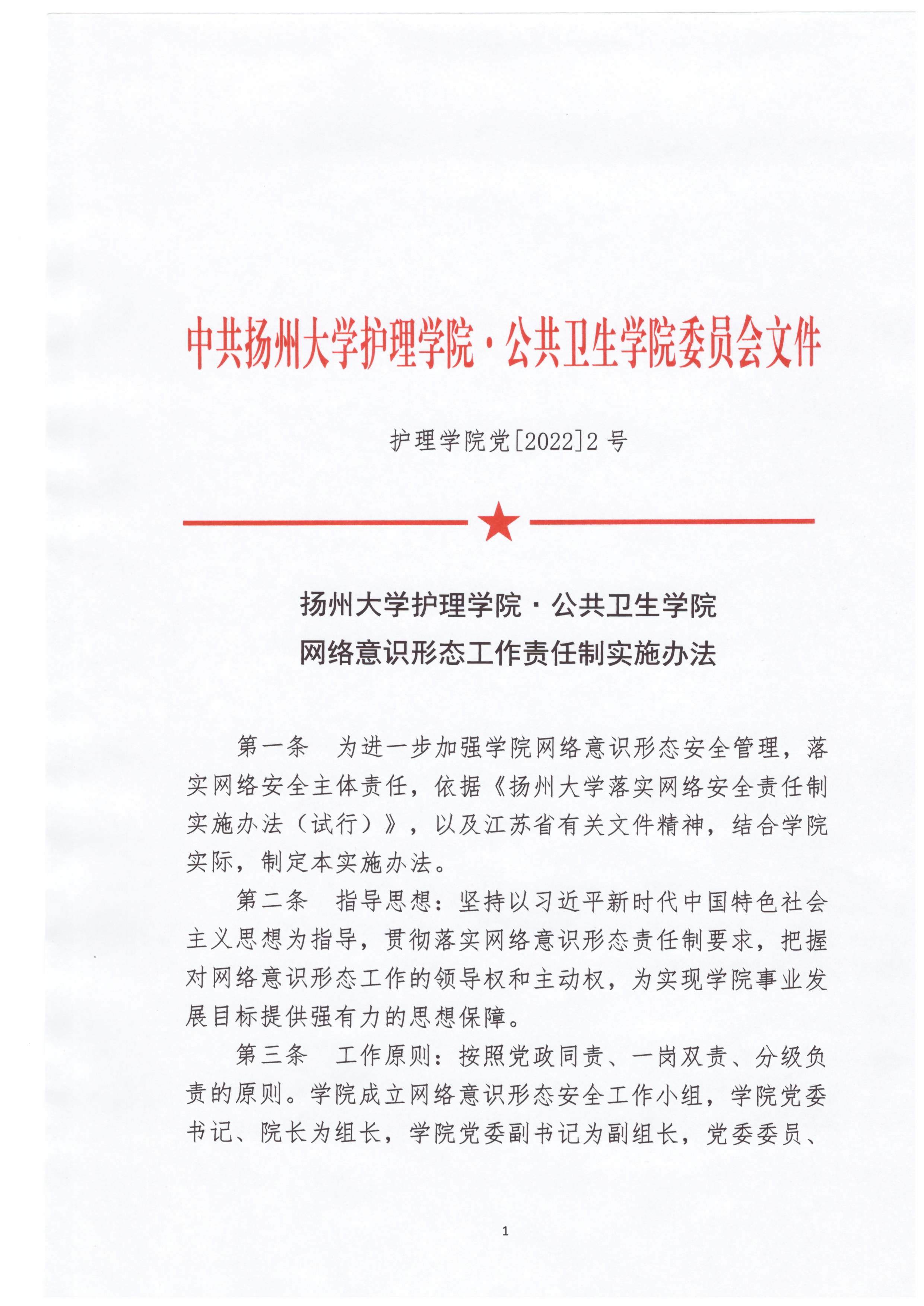 扬州大学护理学院·公共卫生学院网络意识形态工作责任制实施办法