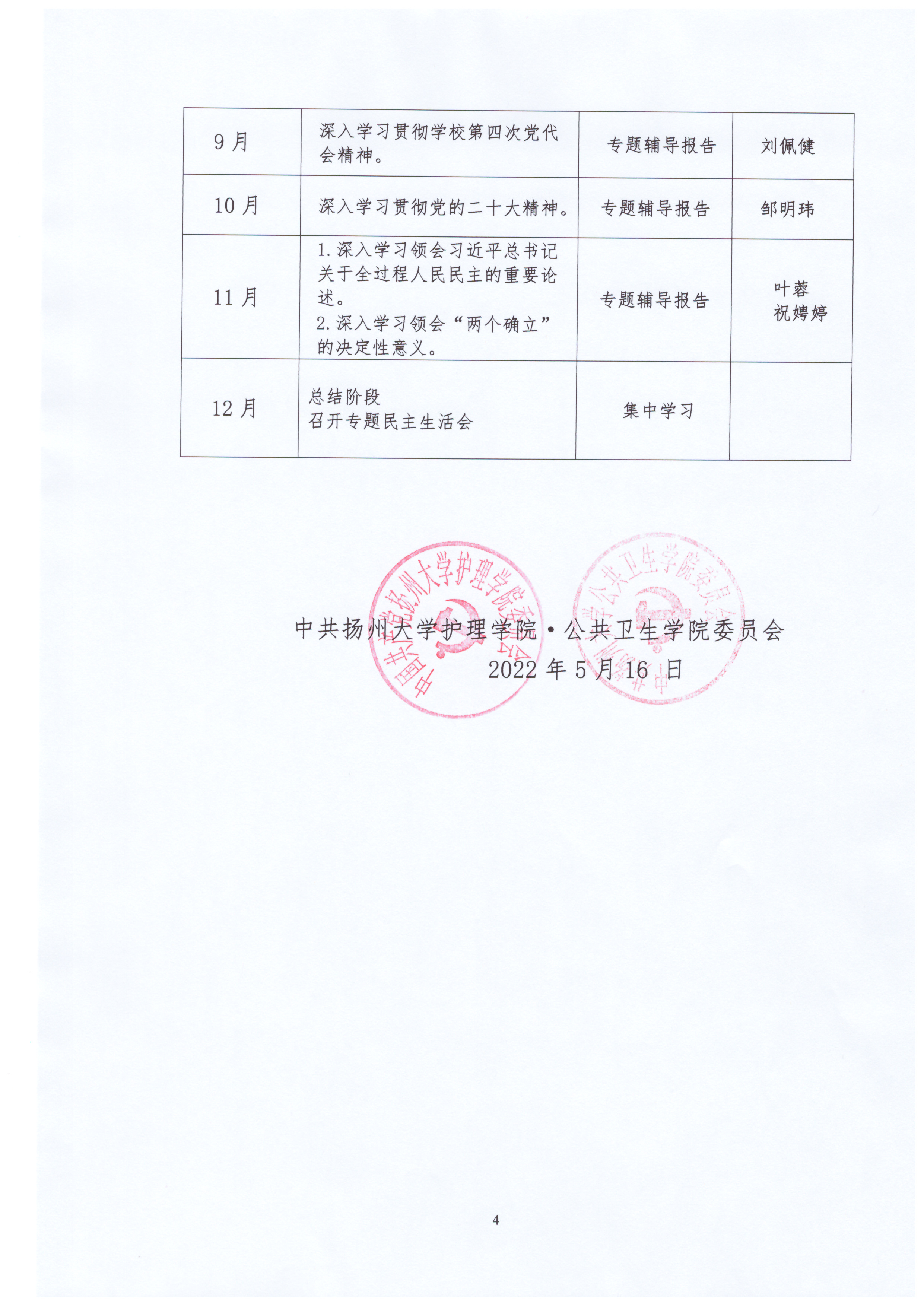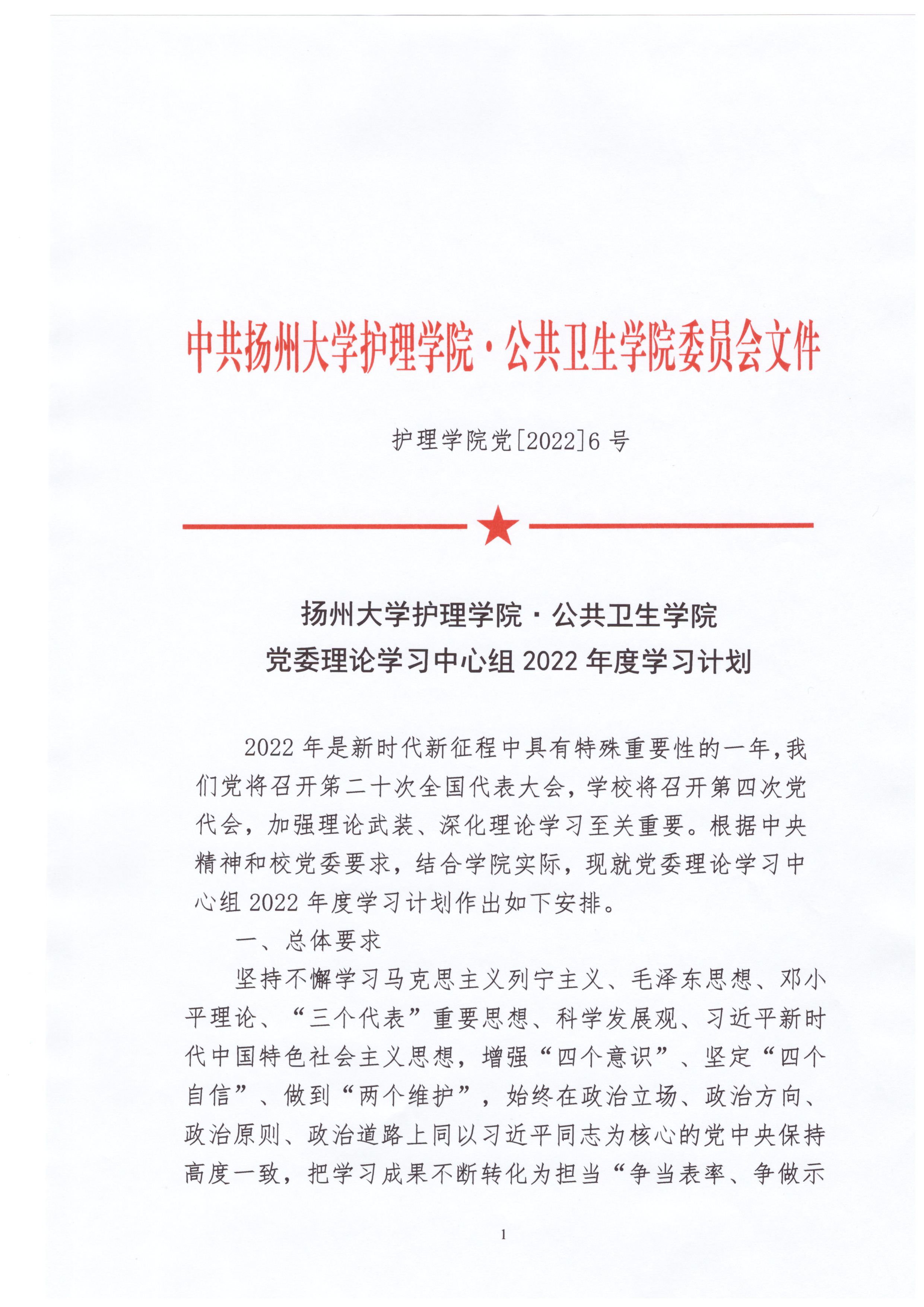 扬州大学护理学院·公共卫生学院党委理论学习中心组2022年度学习计划