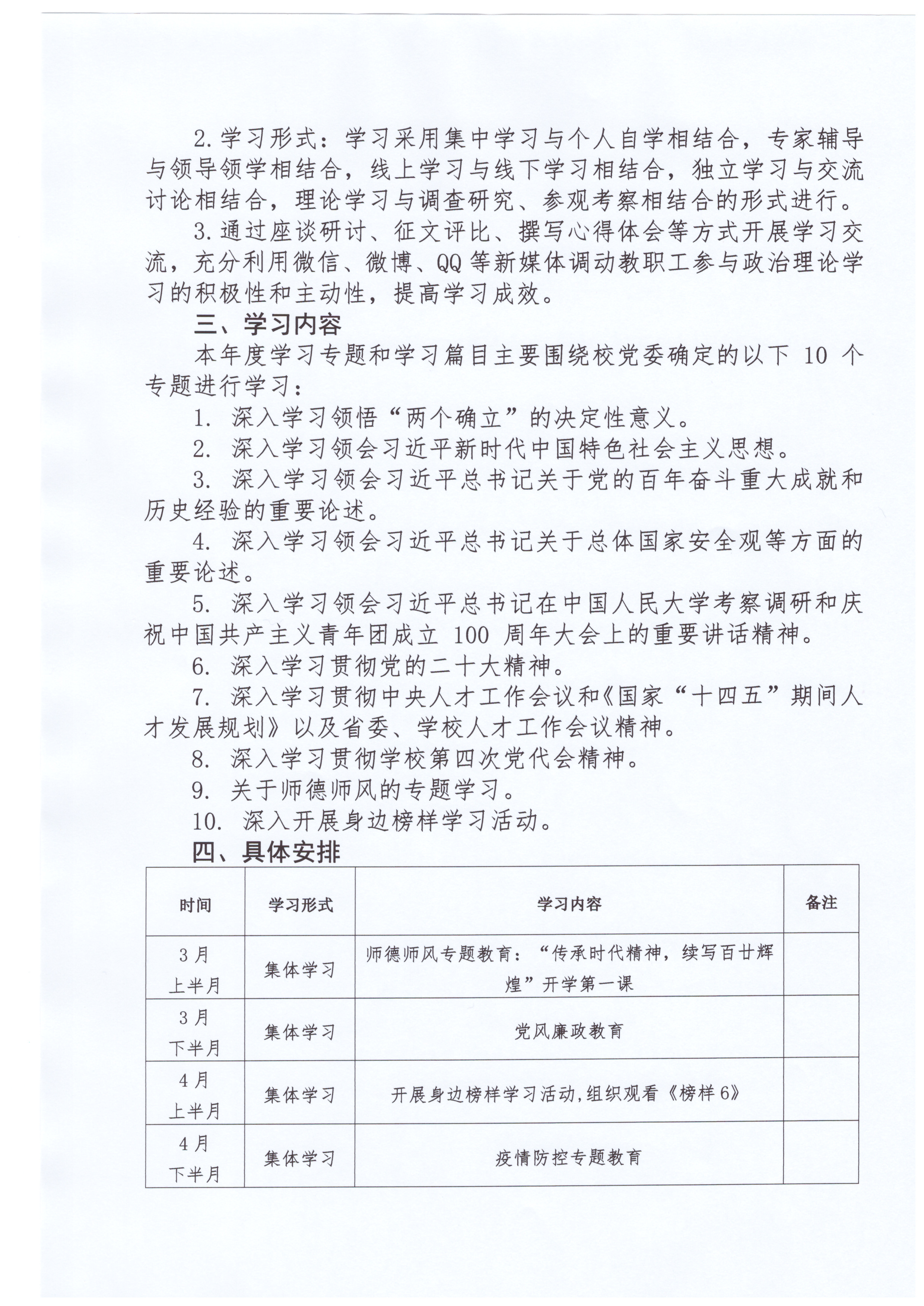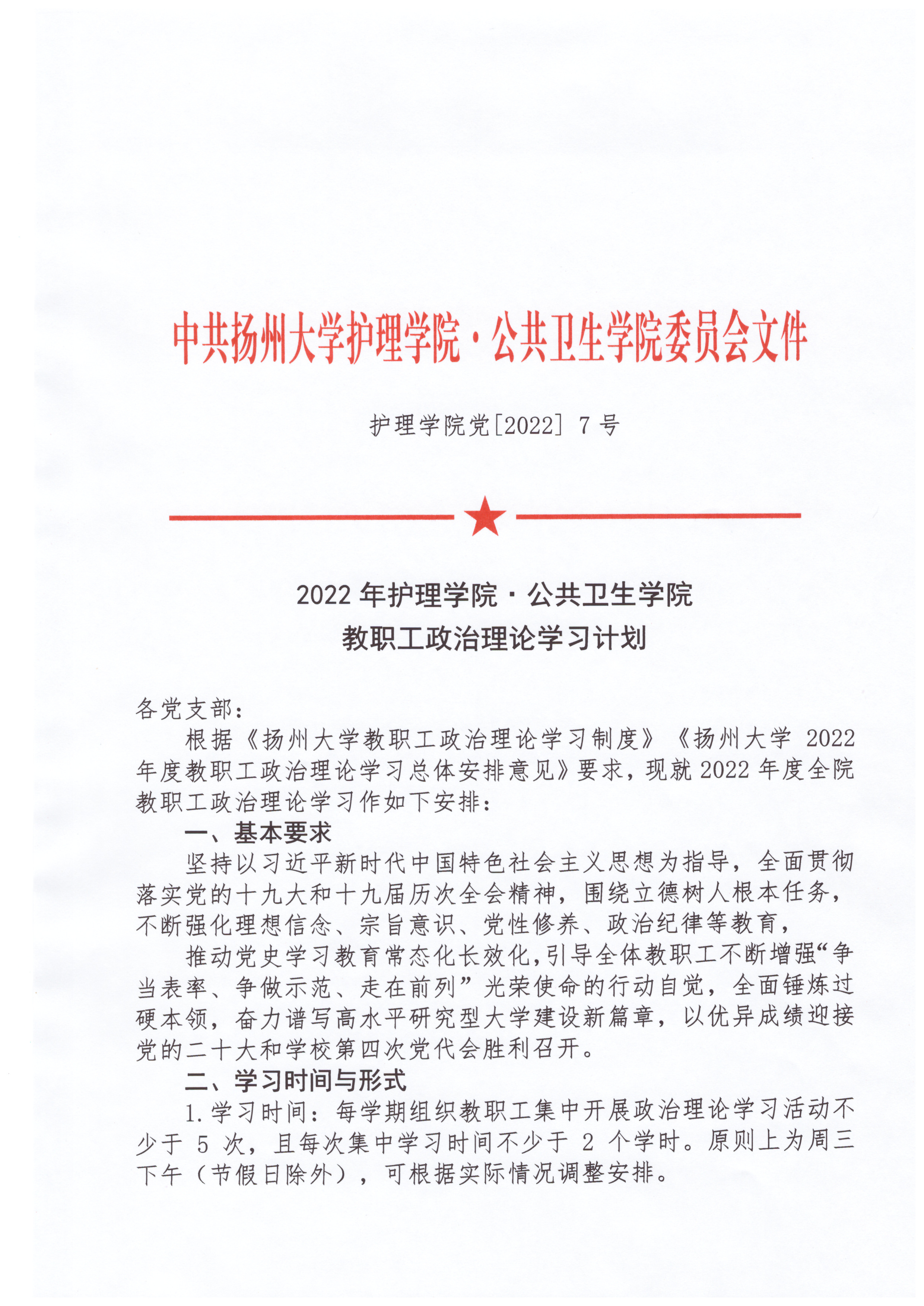 2022年护理学院·公共卫生学院教职工政治理论学习计划