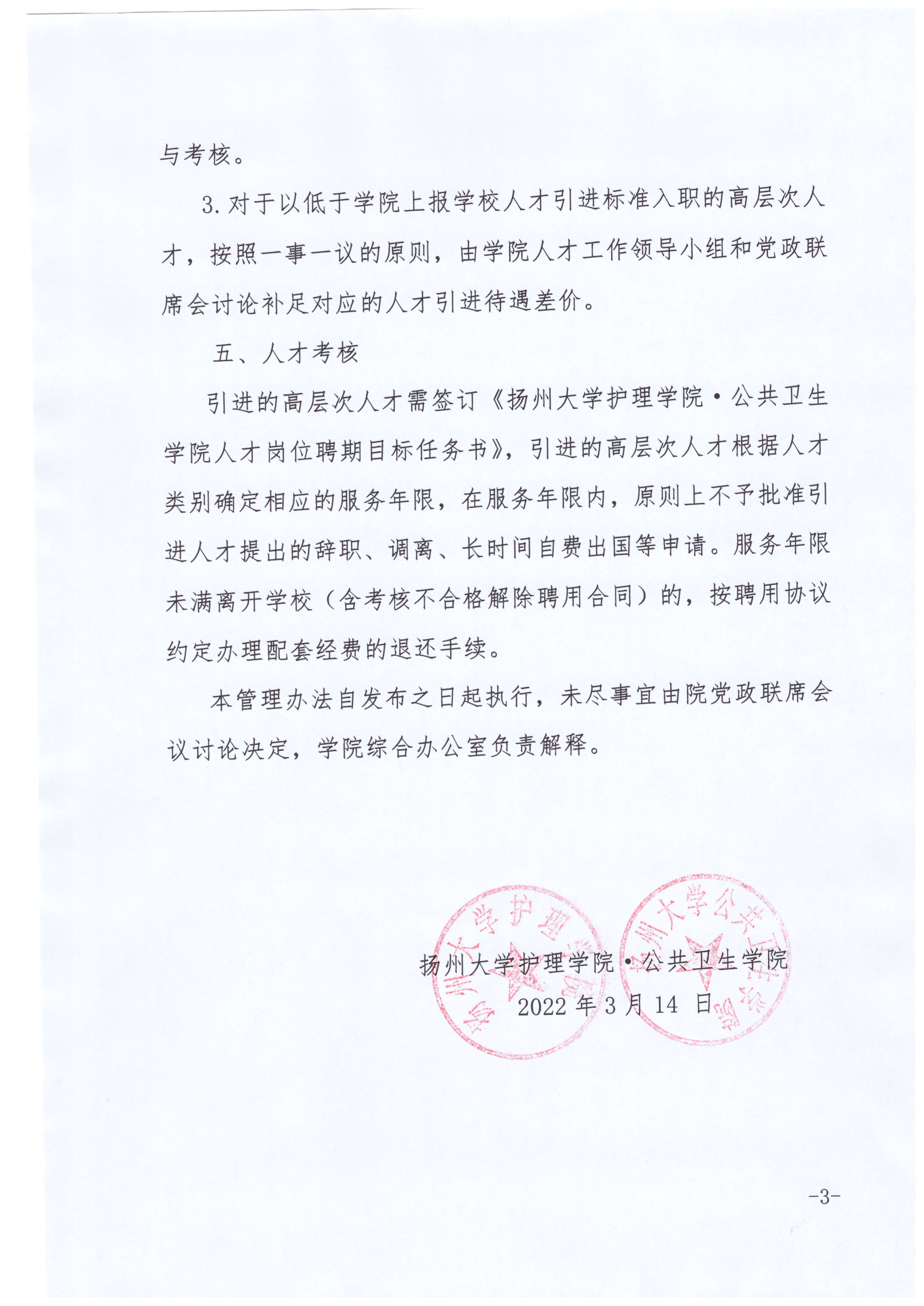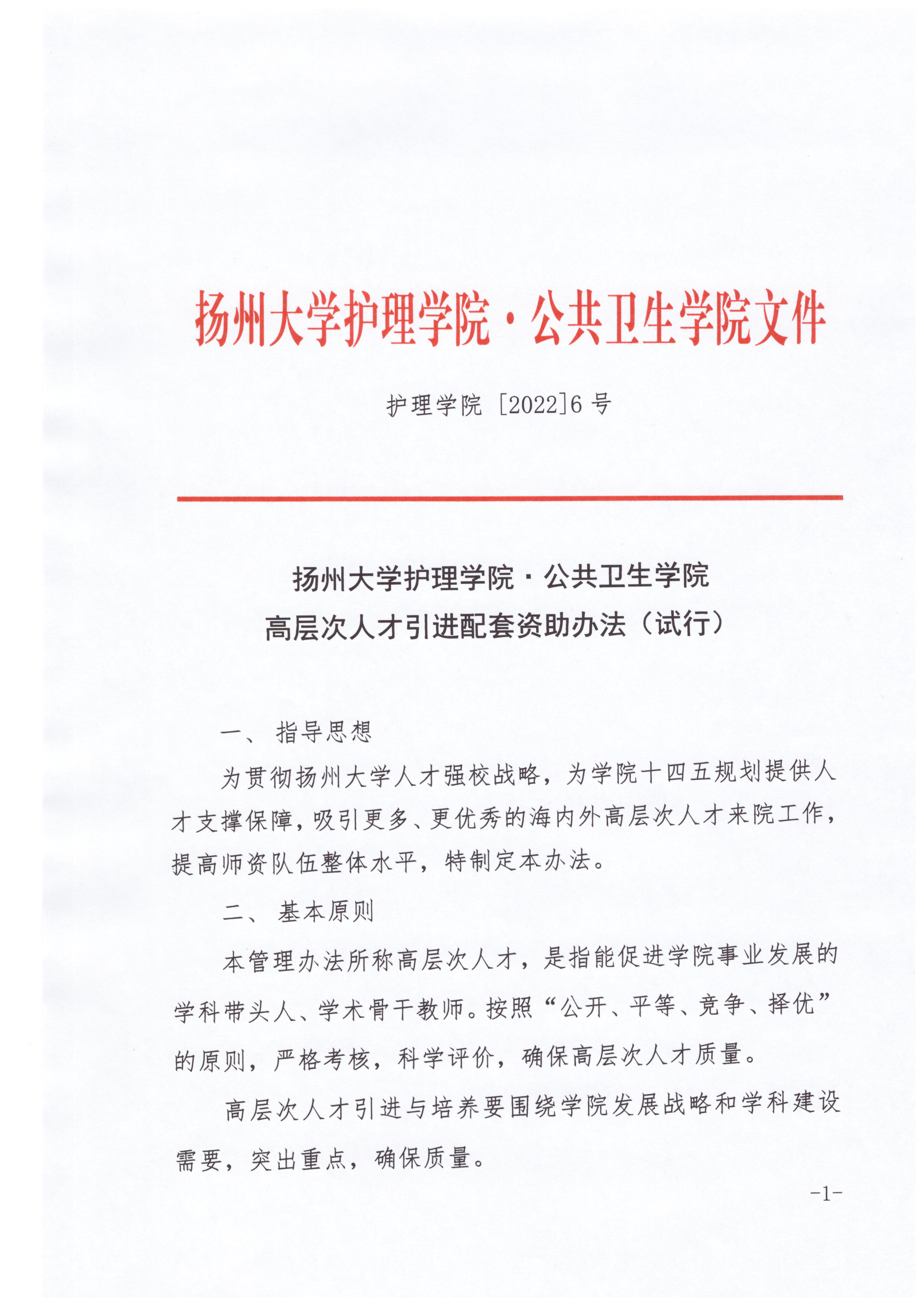 扬州大学护理学院·公共卫生学院高层次人才引进配套资助办法(试行)