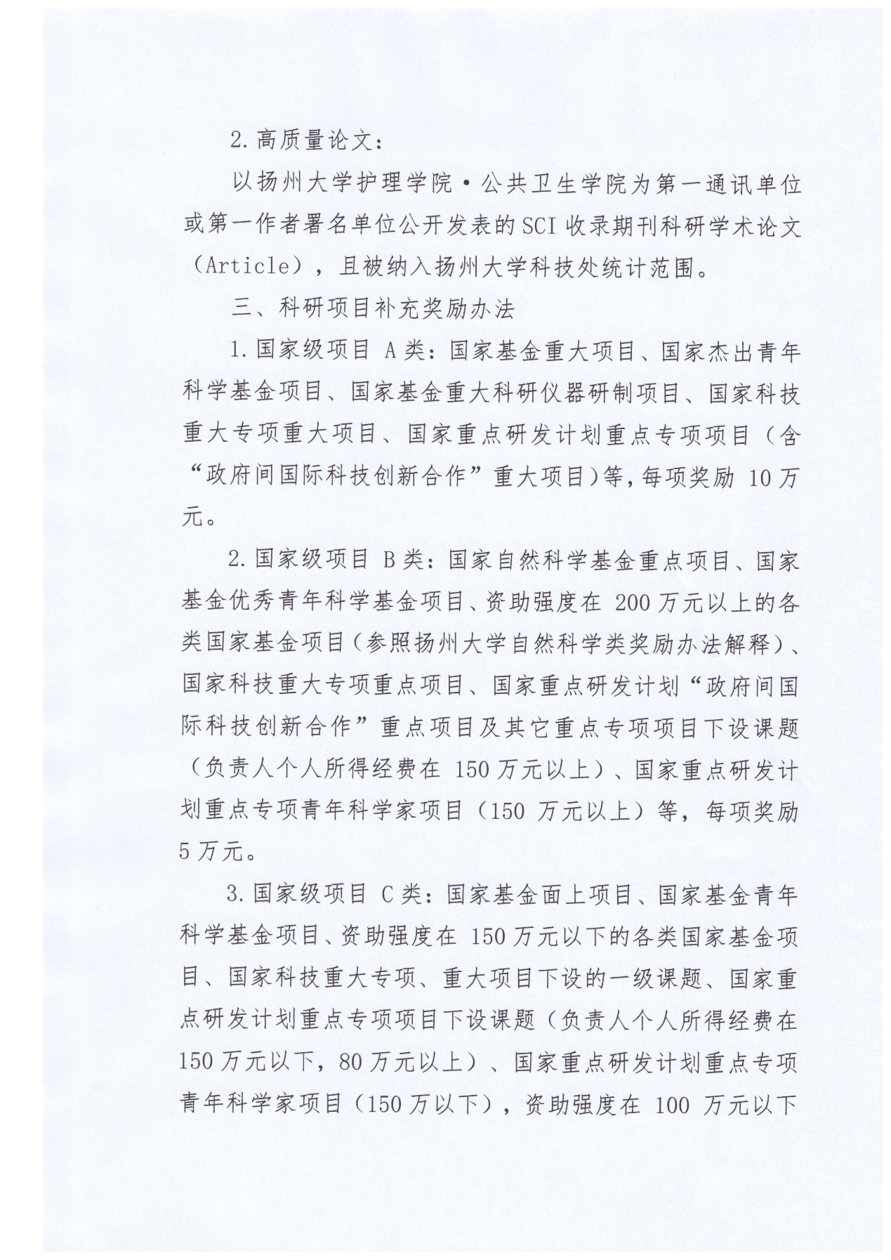 扬州大学护理学院·公共卫生学院科研工作补充奖励实施办法(修订版)