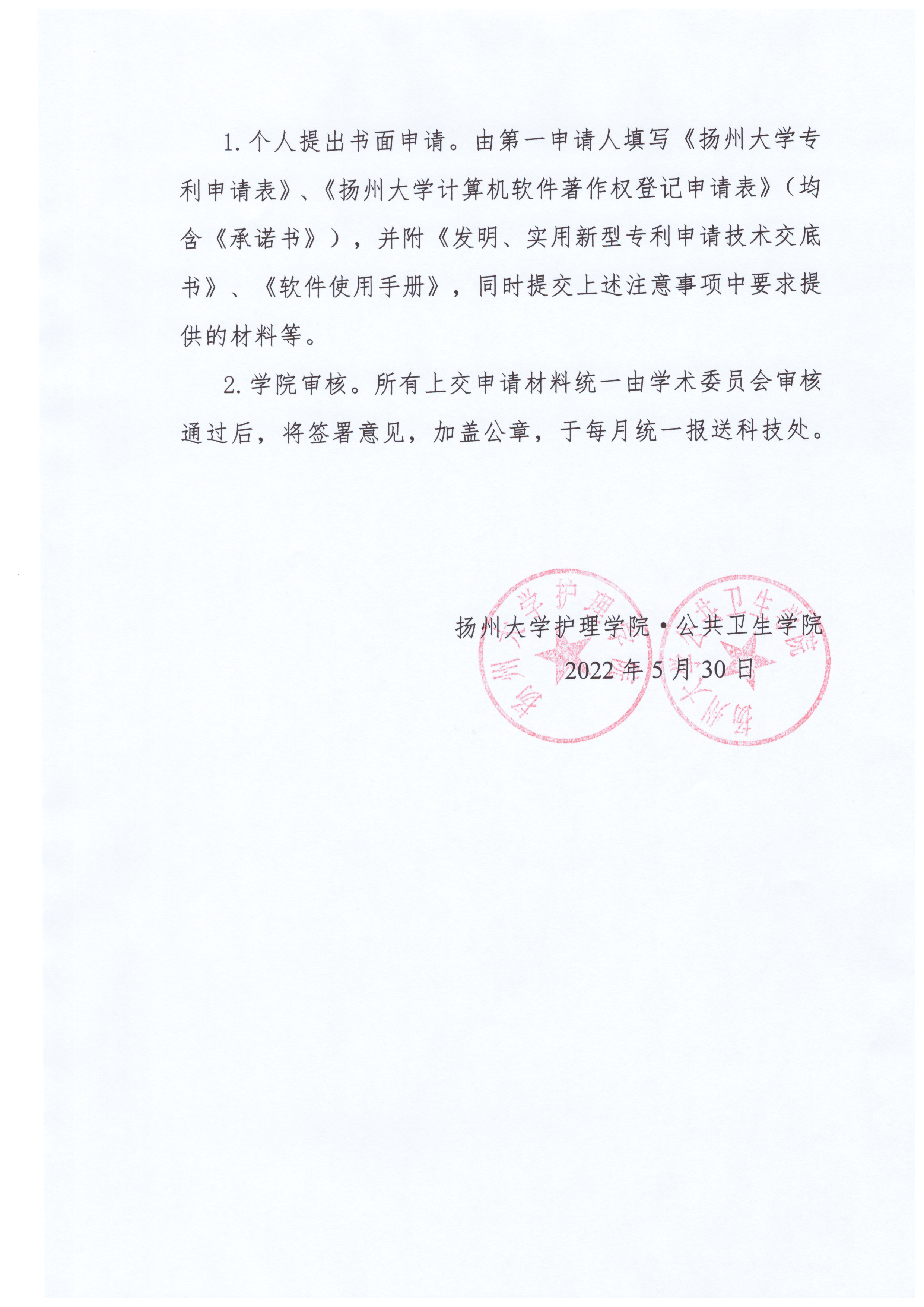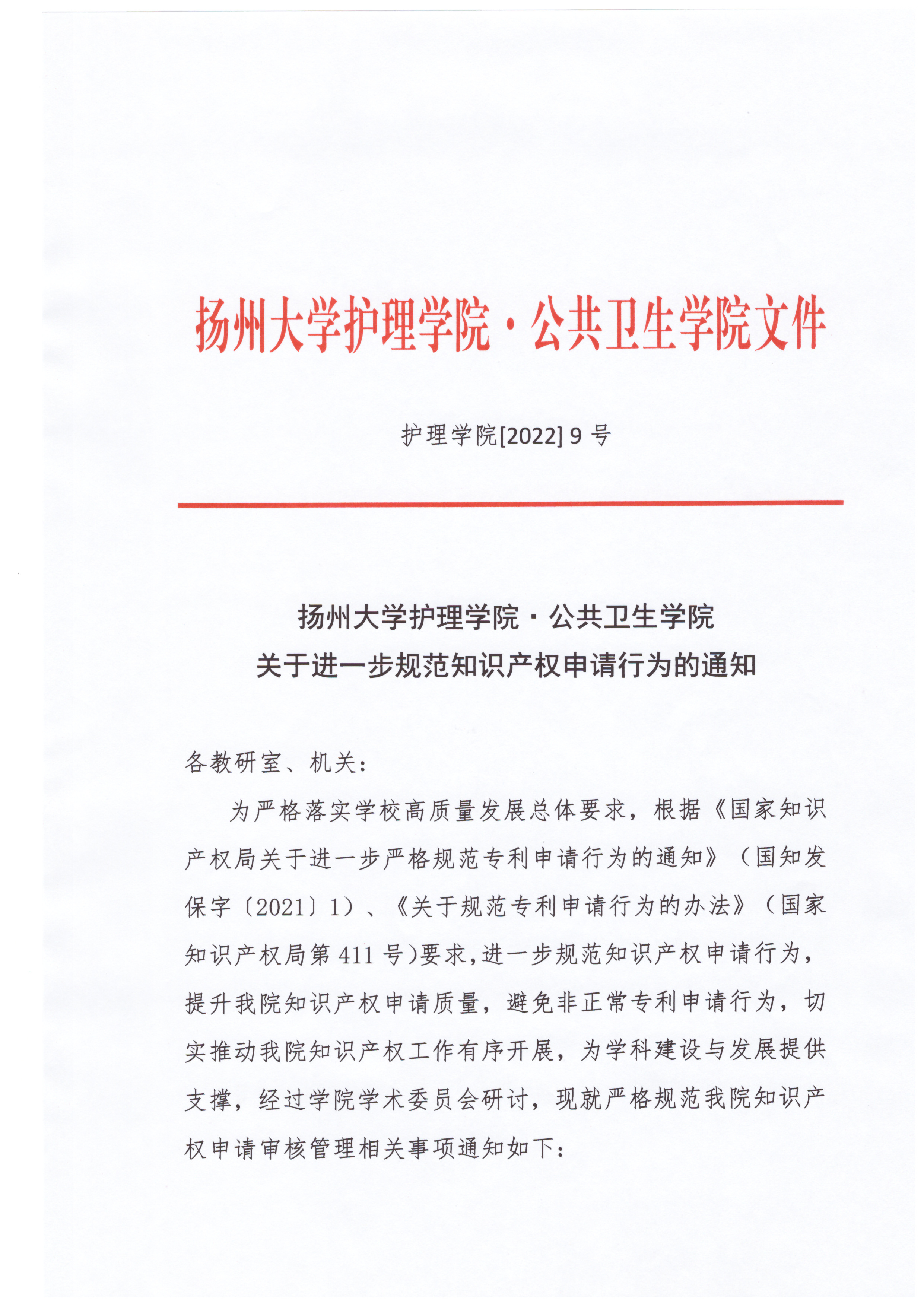 扬州大学护理学院·公共卫生学院关于进一步规范知识产权申请行为的通知