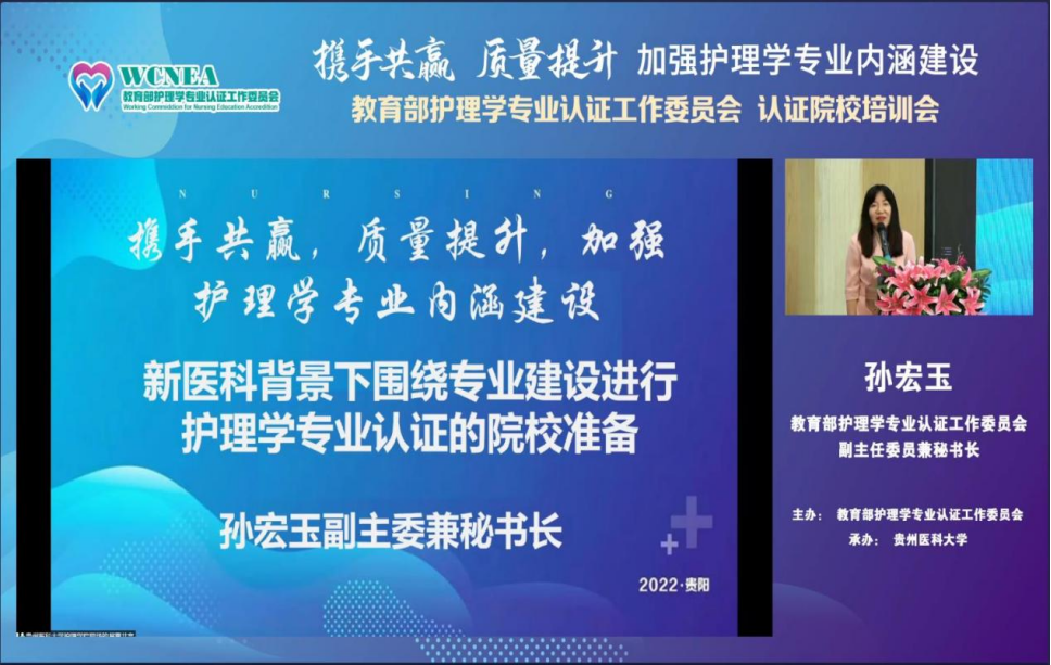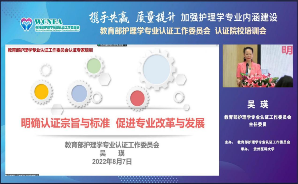 培训会上,首都医科大学原校长、教育部临床医学专业认证工作委员会顾问吕兆丰教授作了“医学认证的一般规律与医学教育教学改革”报告;随后,国家教育部护理学专业认证工作委员会副主任委员吴瑛以“明确专业宗旨与结果,促进专业改革与发展”为主题,对认证理念和标准等方面作了深度剖析,为护理学专业改革与发展提供了方向;专业认证专家组成员姜小鹰、安力彬、姜安丽、孙宏玉和杨芳宇分别从临床教学基地建设、课程思政、人才培养模式、院校准备和内部质量监控机制等方面进行了全面解读。