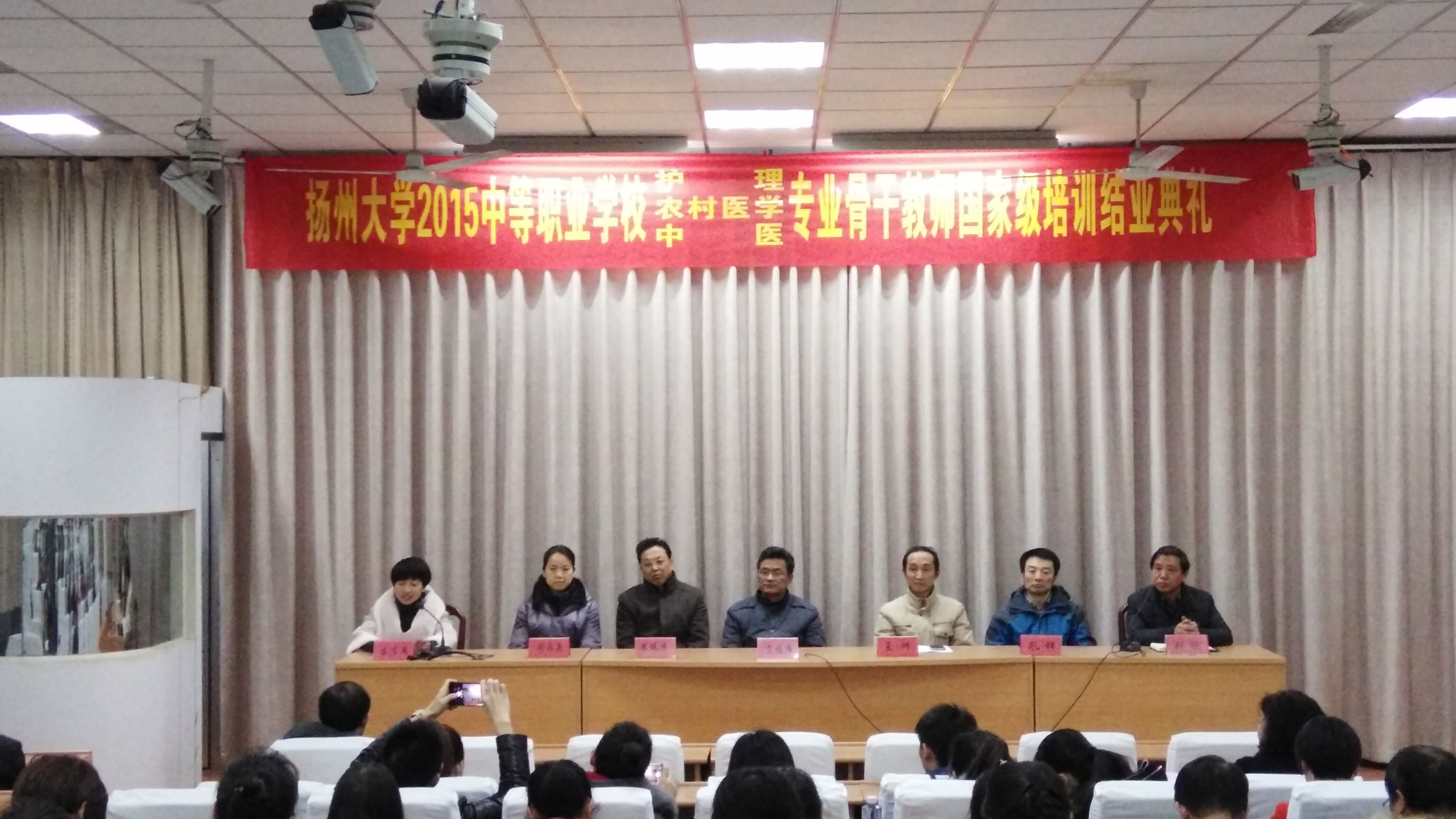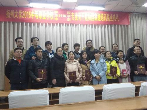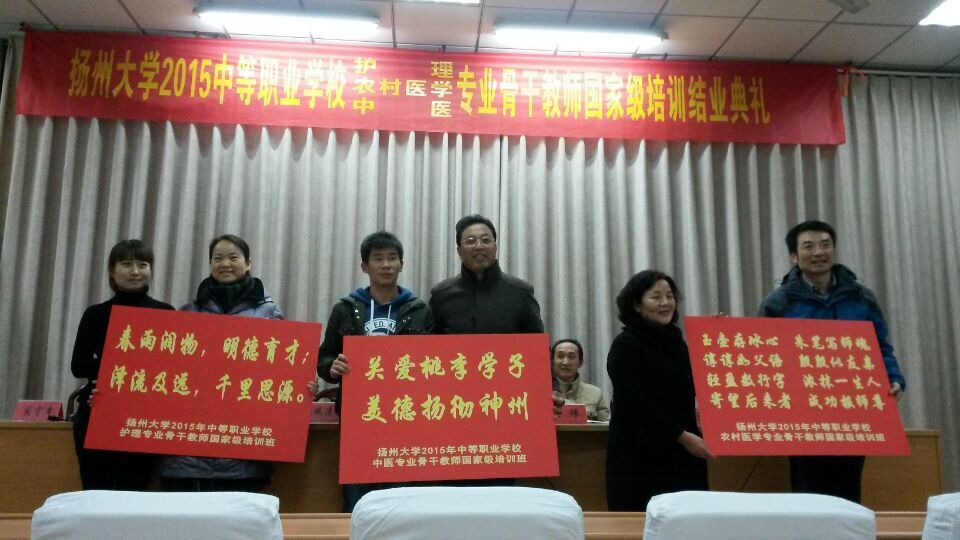 12月25日,我院与医学院一同举行了2015年中等职业学校农村医学、护理、中医专业骨干教师国家级培训班结业典礼。继续教育学院院长贡福海、医学院党委书记王炜、医学院临床医学系主任孔祥、医学院中西医结合系主任苏佩清、护理学院刘永兵出席会议。92名学员与班级班主任都参加了活动。会议由院继续教育办公室主任张跃主持。